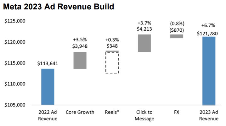 The Click to Message opportunity could generate a revenue run rate exceeding $20 billion by the end of 2024. Notably, there has been a noticeable surge in US WhatsApp commercials, indicating the company's focus on leveraging this platform for business purposes.