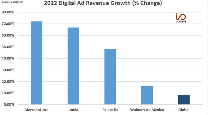 Advertising continues to face pressure, with traditional TV, outdoor, and audio struggling to offset price degradation with volume levers. Conversely, LATAM firms' digital advertising growth in 2022 leads with a remarkable 72.1% increase. MercadoLibre MELI 0.00%↑ saw its 5th quarter with >70%+ growth, hinting at continued growth in 2023.